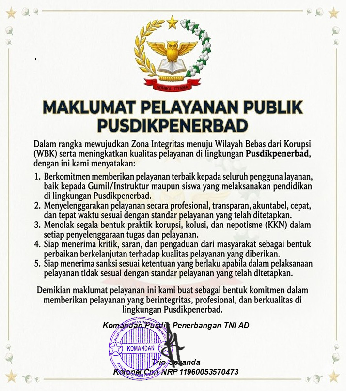 Pusdikpenerbad adalah pusat pendidikan penerbangan TNI AD dengan pendekatan modern dan minimalis.